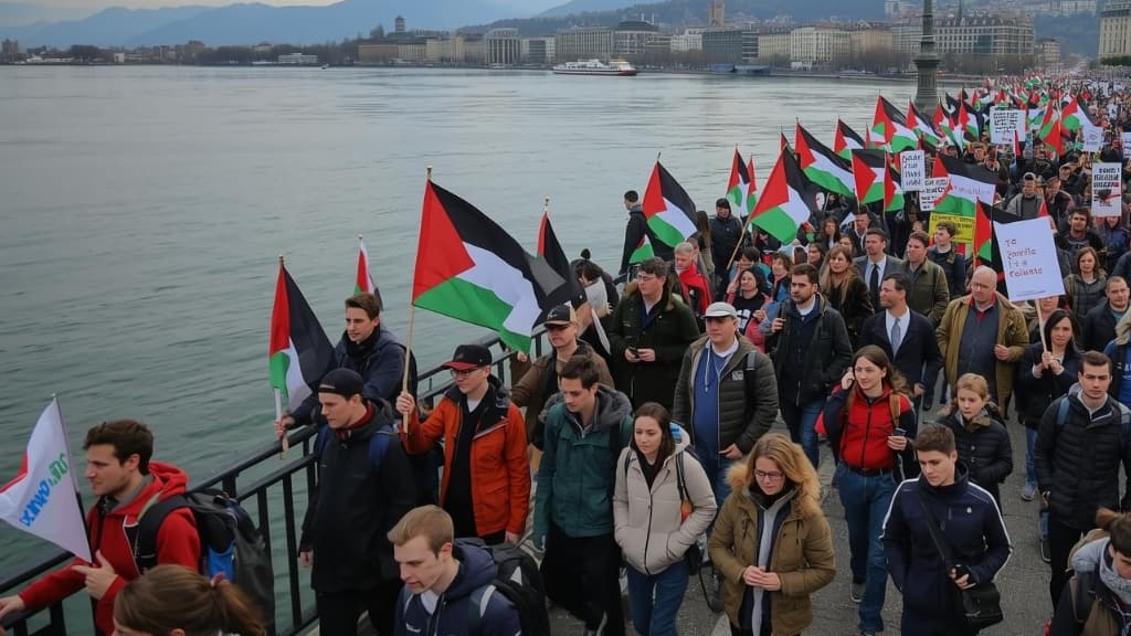 Kalabalık daha sonra şehir merkezinden yürüyüşe geçerek Mont-Blanc Köprüsü’nü geçti ve protestoyu tren garı arkasındaki Parc des Cropettes’te sonlandırdı. Polis, gösterinin olaysız şekilde sona erdiğini bildirdi. Katılımcılar arasında çok sayıda genç ve ailelerin bulunması dikkat çekti.