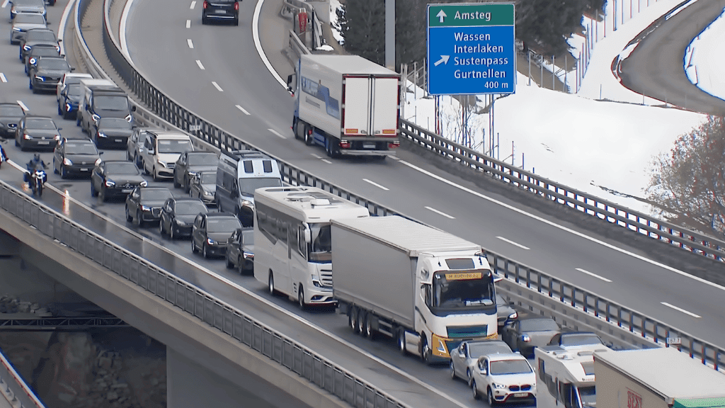 Touring Club Schweiz (TCS), özellikle Kutsal Cuma günü öğle saatlerinde yoğunluğun zirveye çıktığını açıkladı. Trafik, A2 otoyolunda Erstfeld ile Göschenen arasında tamamen sıkıştı.